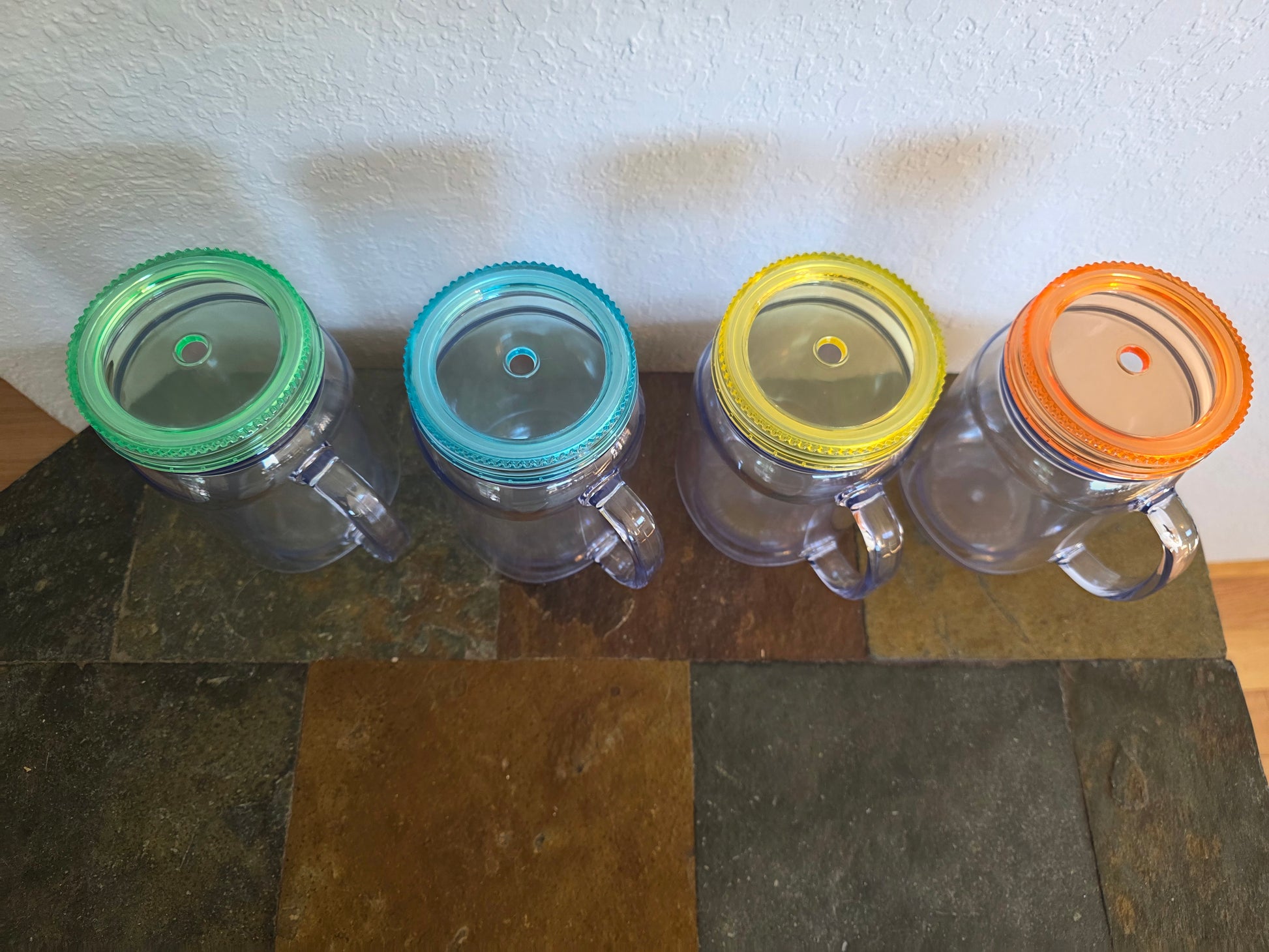 20 oz Mason Jar Cup with handle and Neon colored Lids